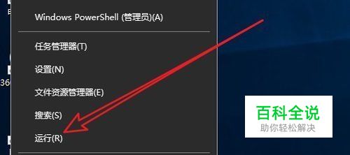 在Windows10系统桌面,我们右键点击桌面左下角的开始按钮,在弹出的右键菜单中我们点击“运行”菜单项。