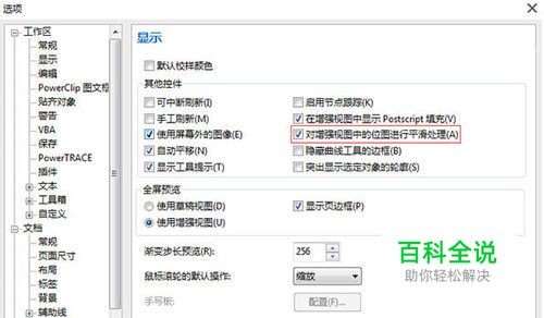 CorelDRAW X7中优化设置2:选择是否对增强视图中的位图平滑处理,也对CorelDRAW X7的速度有影响。单如果显卡足够的话,选择此项会让视图里的位图更加清晰。