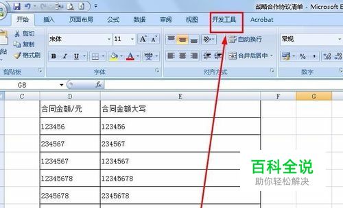 我们打开需要插入视频的Excel文件,点击菜单栏上的“开发工具”。