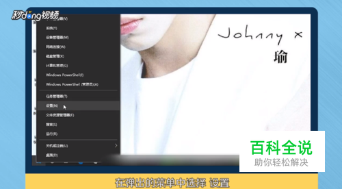 鼠标右键单击屏幕左下角的Windows图标,在弹出的菜单中选择“设置”。