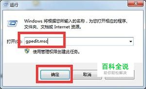 使用组合快捷键“win+r”打开运行,输入“gpedit.msc”,回车确定。