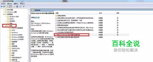 从本地组策略编辑器的左边栏目中依次进入“计算机配置” — “管理模块” — “系统” — “设备安装” — “设备安装限制”,双击右边栏目的“禁止安装可移动设备”选项。