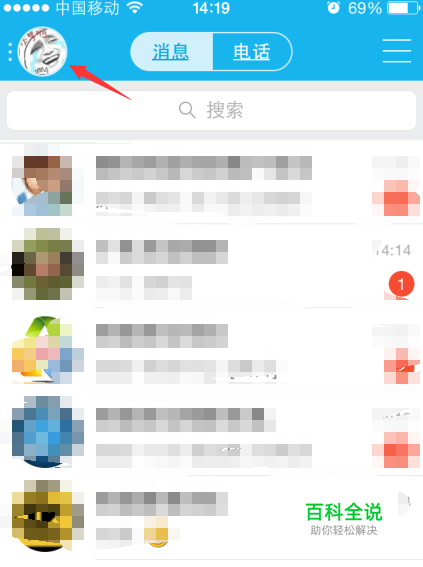 打开进入到我们要关闭或开启锁屏显示消息弹窗的手机QQ,然后在主窗上点击自己头像进入设置。