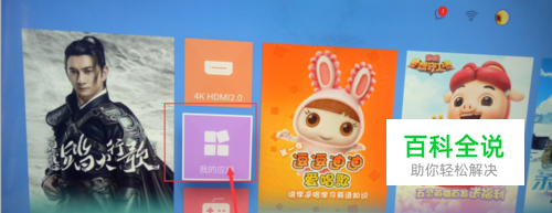 下面进入连接过程,先将电脑的连接端打开。打开电视机,进入首页,遥控器选择或者鼠标点击 我的应用