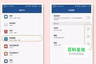 打开手机设置-通知栏和状态栏-通知中心-系统更新