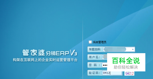 首先打开管家婆软件,输入自己公司设置的账套名称、用户名、密码及系统随机验证码登陆进去。