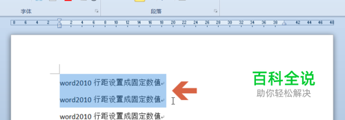 介绍在word2010中如何把文字的行距设置成一个固定的数值,以供参考。
