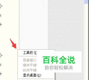 首先我们把鼠标放到任务栏的某一位置并右键一下,然后从右键选项菜单中点选“工具栏”选项。
