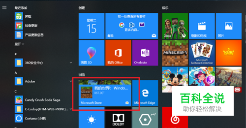 第一步在win10系统点击桌面任务栏上的开始菜单,可以看到应用商店,如下图所示: