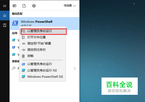第二步我们开始来彻底卸载掉应用商店,在任务栏搜索框中搜索PowerShell,搜索到之后,右键选择以管理员身份运行,如下图所示: