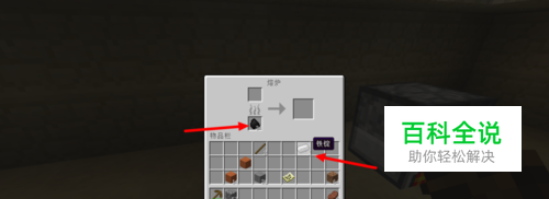 打开熔炉,把采矿获得的煤矿还有铁矿石放到左侧,煤矿在下,铁矿石在上,会自动精炼,右侧就会获得铁锭。