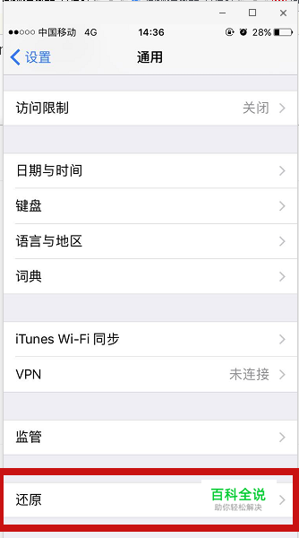 还原所有设置,轻按 “设置”>“通用”>“还原”,然后向下滚动并轻按“还原所有设置”。