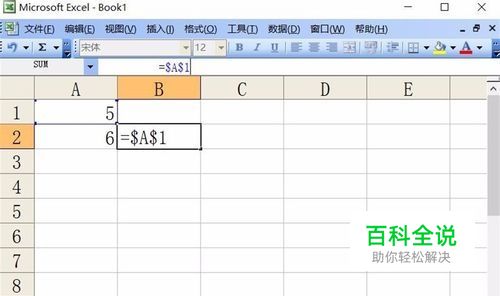我们先对“相对引用”做一个示范。在A1中输入5,在A2中输入6,在B2中输入“=A1”,按回车后,B2结果为6。