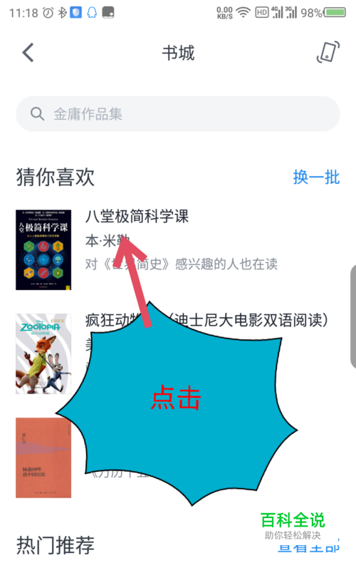 打开阅读界面后,点击一下屏幕的任意位置。如图所示