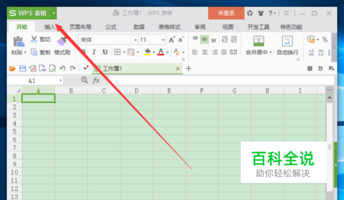 1、鼠标左键双击计算机桌面WPS表格程序图标,将其打开运行。在打开的WPS表格程序窗口,点击左上角的“WPS表格”选项按钮。如图所示;