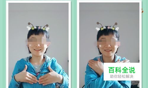 整个手势舞上身左右扭动更有感觉呢。 首先双手放在胸前,右手放在肩上,接着左手交叉放肩上,如图所示。