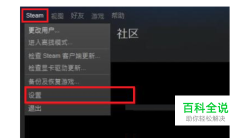 登录steam平台,点击菜单上的steam,选择设置。