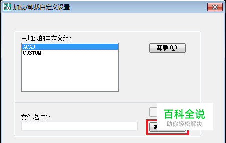 开启AutoCAD,在命令行里输入CUILOAD,打开加载/卸载自定义设置窗口。