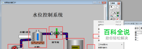 添加五个对象:水泵,调节阀,出水阀-开关型,液位1,液位2-数值型
