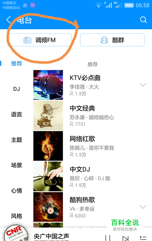 怎样用酷狗音乐收听广播电台