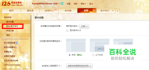 在邮箱右侧的列表中,点击邮件收发中的,签名电子名片选项卡