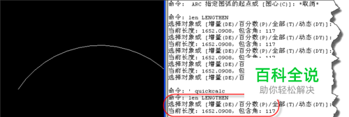 用拉长lengthen命令 在命令行中输入len,选取该弧,就可以快速知道该弧弧长和其圆心角。