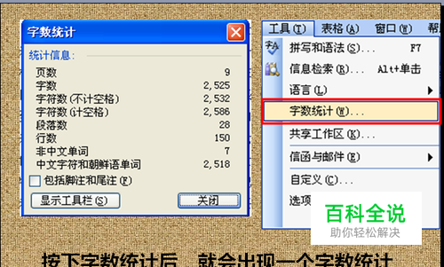 通过点击字数统计,可以查看字数情况。