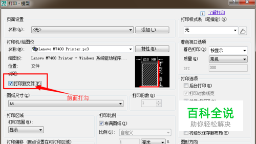 【打印机/绘图仪】选区域中的【打印到文件】复选框:可以指示将选定的布局发送到打印文件,而不是发送到打印机。