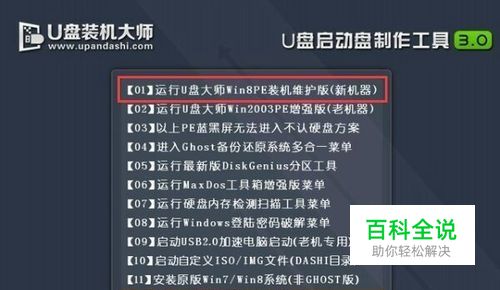 完成上述操作后,我们选中【01】运行U盘大师win8PE装机维护版(新机器)按下回车“Enter“键,进入U盘装机大师主菜单界面。