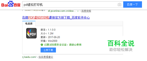 首先打开电脑浏览器,搜索pdf虚拟打印机,找到软件安装到桌面。