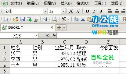 打开WPS表格,制作如下图所示的表格数据,或者插入已经制作好的表格。