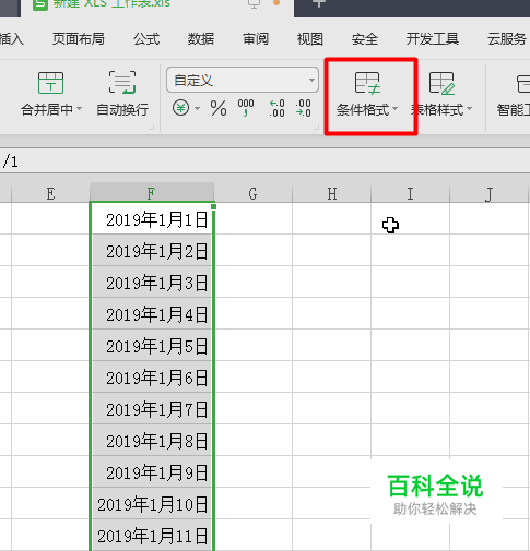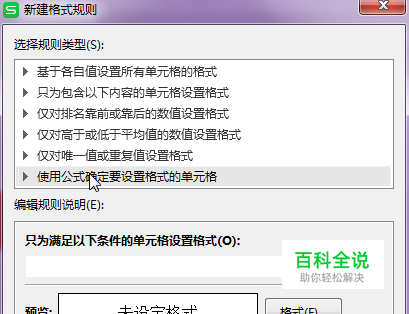 在输入框中输入“=weekday($F1,2)>5”,点击格式