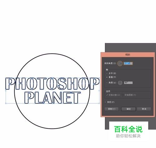 接下来在上方工具栏中选择对象-变换-倾斜,对字体进行变换。