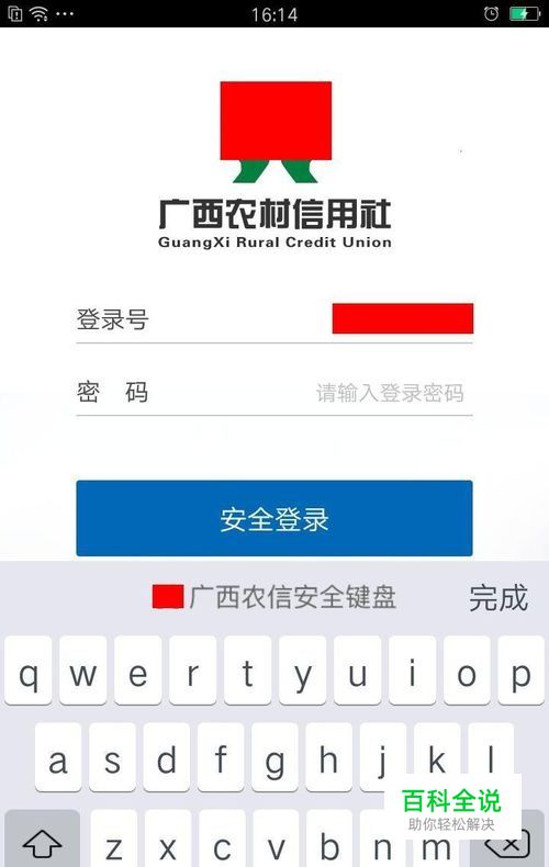 首先,打开手机农信银行,输入账号和密码(下载安装之后还要去农信营业网点去办理开通手机银行账户)。