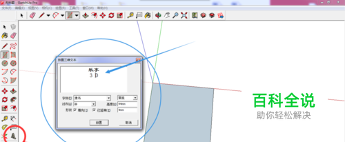 输入三维文字,工具如图中箭头所指。
