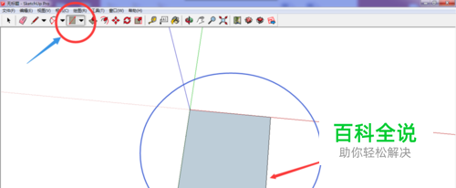 打开SketchUp 绘画底座,工具如图中箭头所指。