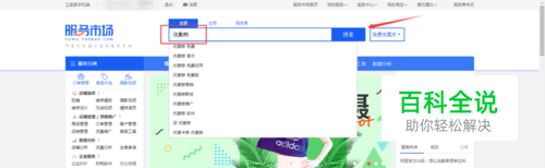 进入淘宝服务市场,我们在搜索框输入“优惠券”点击搜索。