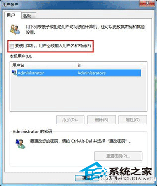 然后在命令框里输入“control userpasswords2”(不含引号),按回车键,打开用户账户对话框,将“要使用本机,用户必须输入用户名和密码”前面的对勾取消,最后点击“确定”按钮保存设置。