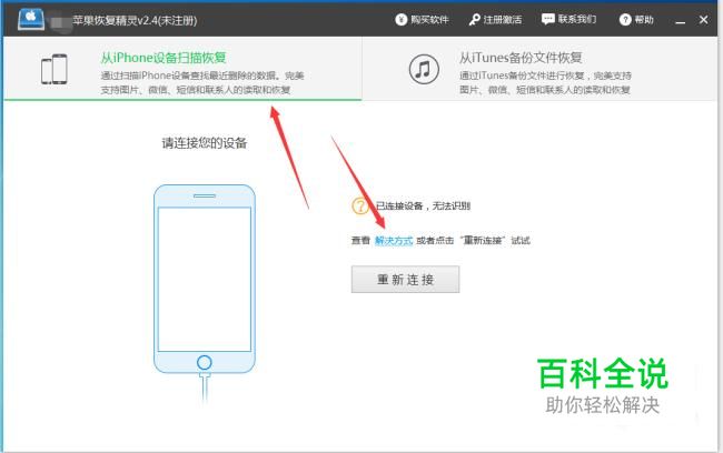 运行恢复工具,将手机连接到电脑