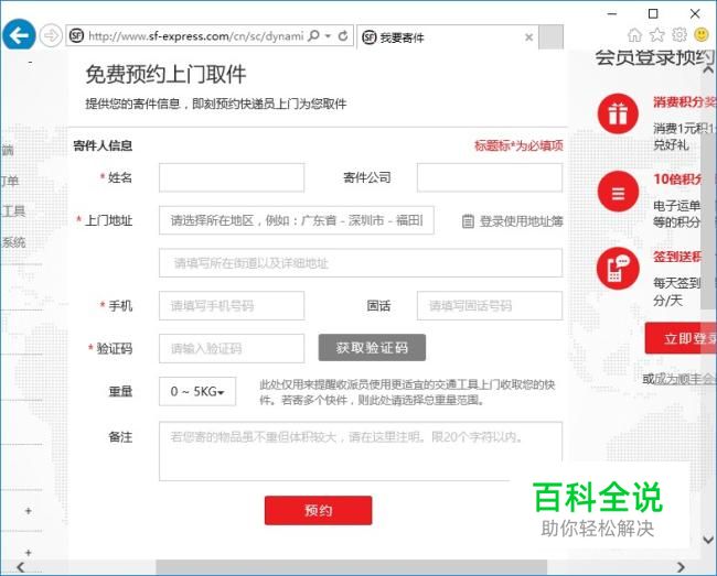 按照信息全部填写完成后,点击预约按钮,等待顺丰快递员上门取件。