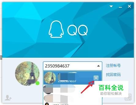 点击下拉箭头后,点击需要删除聊天记录的qq号后面的×。