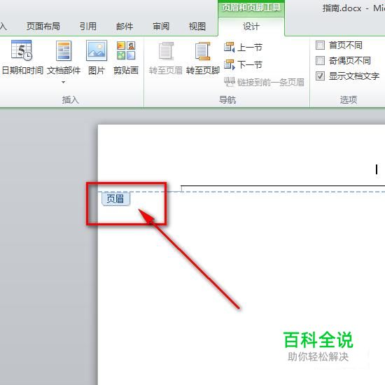 接着我们用鼠标双击两下页眉,出现这个标记代表页眉可以编辑!