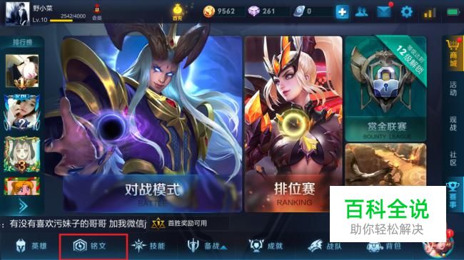这时我们进入了铭文的首页,点击左边通知栏铭文背包。