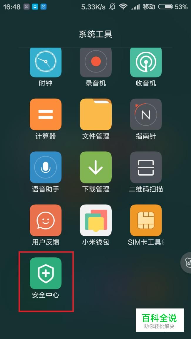 在“系统工具”菜单里找到“安全中心”并点击打开。