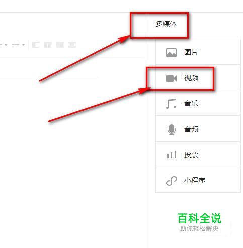 接着点击“多媒体”下的“视频”,在这里可以添加视频链接。