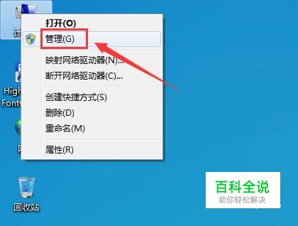 面对这样的问题我们该怎么办呢,不要着急我们在桌面上找到计算机图标,在该图标上单击鼠标右键,在弹出的菜单里找到管理选项,如图所示: