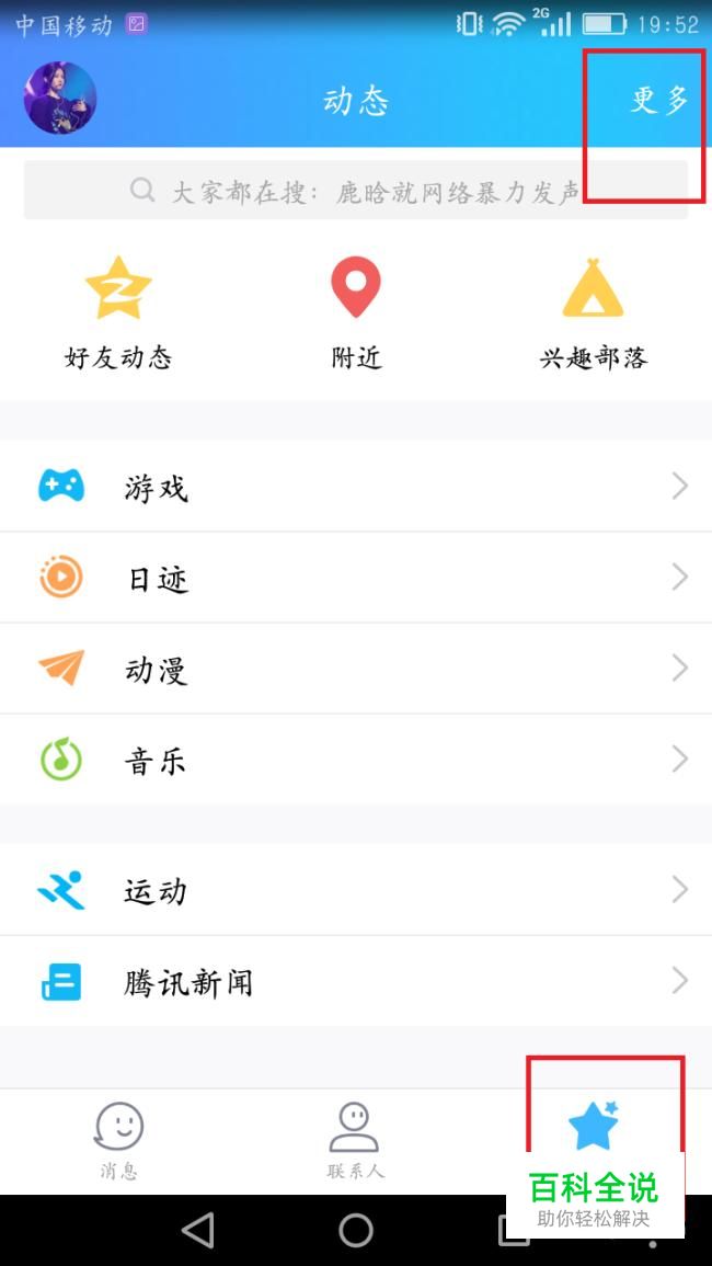 打开手机QQ,在“动态”界面找到“更多”后进入。