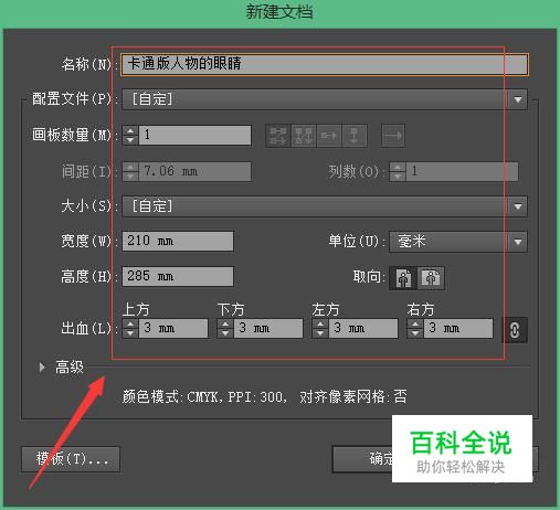 我们先打开我们的ai软件,接着新建一个名字为"卡通版人物的眼睛"。