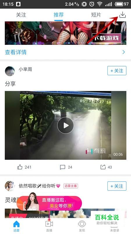 进入迅雷界面后,选择右上方“下载符号”