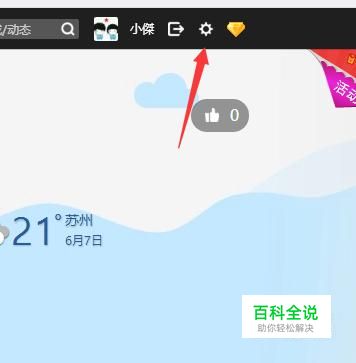 我们需要借助签名档才可以实现留言上传图片的目的。登录QQ,进入到我们的空间里,在空间的右上角有一个设置的选项。